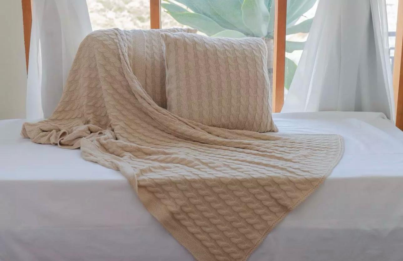 KIT MANTA TRICOT SOFÁ DECORATIVA 180 X 110CM + 2 CAPAS ALMOFADAS 45x45CM