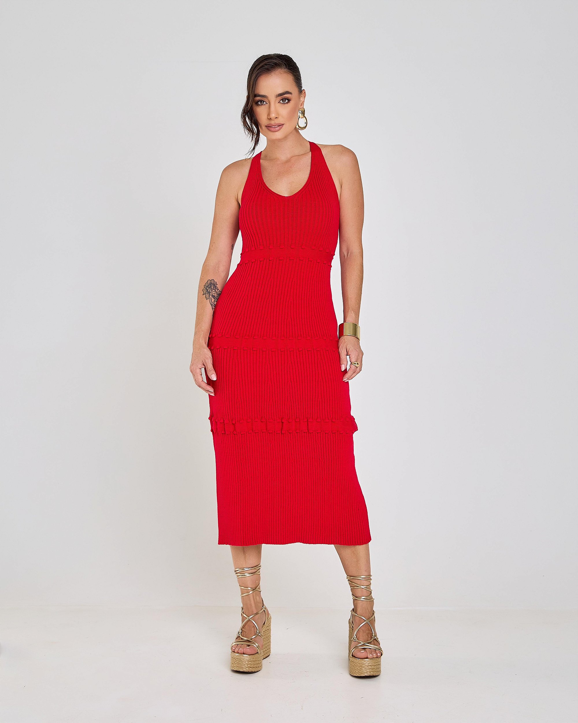 Vestido confeccionado em fio modal canelado.